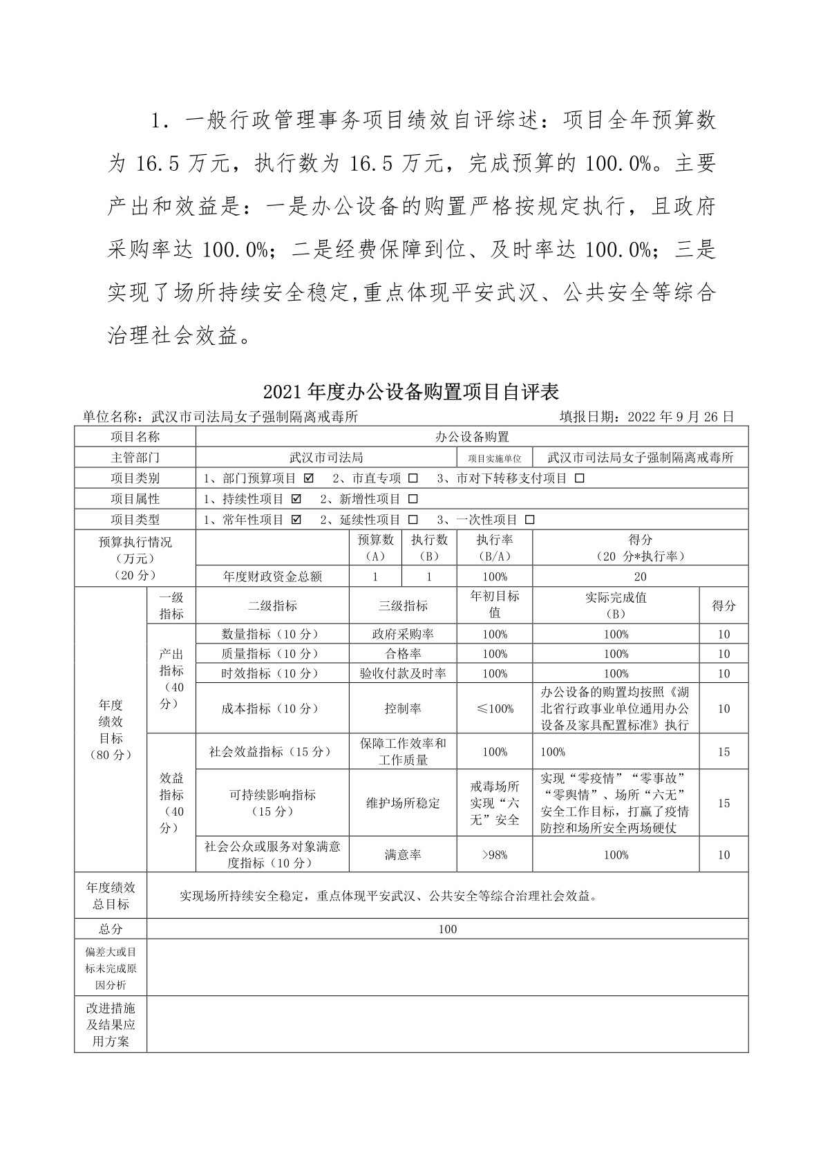 2021年度武汉市司法局女子强制隔离戒毒所单位决算公开